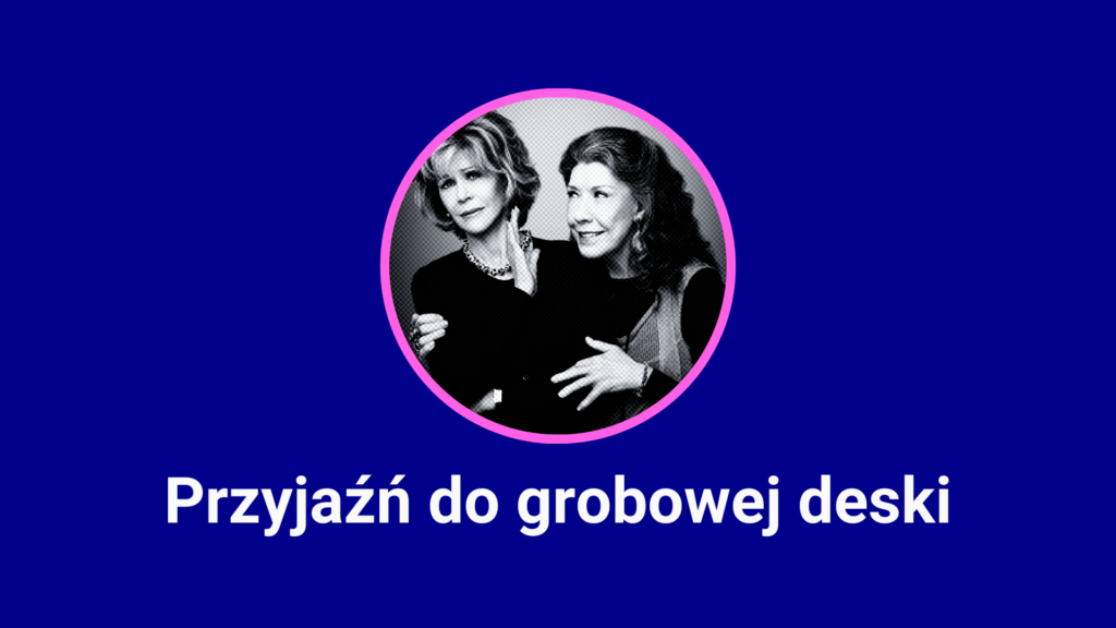 O czym w zasadzie jest ta opowieść, oprócz tego, że stanowi historię barwnych postaci ze skandalem w tle? Przede wszystkim o przyjaźni jako relacji priorytetowej w stosunku do więzi o charakterze romantycznym. Duża część popkulturowych tworów daje nam do zrozumienia, że druga połówka może być nią tylko, jeśli kocha w sposób, któremu towarzyszy popęd seksualny. A jednak miłość czy idea bratniej duszy niejedno ma imię. Grace i Frankie są tego idealnym przykładem. Ich planety krążą wokół siebie w niesamowitym tańcu – raz pędzą po orbitach oddalając się od siebie, to znów lgną ku sobie, bo taka jest naturalna kolej rzeczy. Doceniają się, wspierają, czerpią garściami ze swoich doświadczeń. W fabule jest oczywiście miejsce na obserwowanie satysfakcjonujących relacji romantycznych, choćby tej, którą śledzimy oglądając perypetie mężów głównych bohaterek czy związki tworzonych przez ich dzieci. Mamy jednak jasną informację, że nie wszystko jest trwałe, różnie w życiu bywa, ale prawdziwa bliskość (w postaci przyjaźni, rodziny) przetrwa próby.